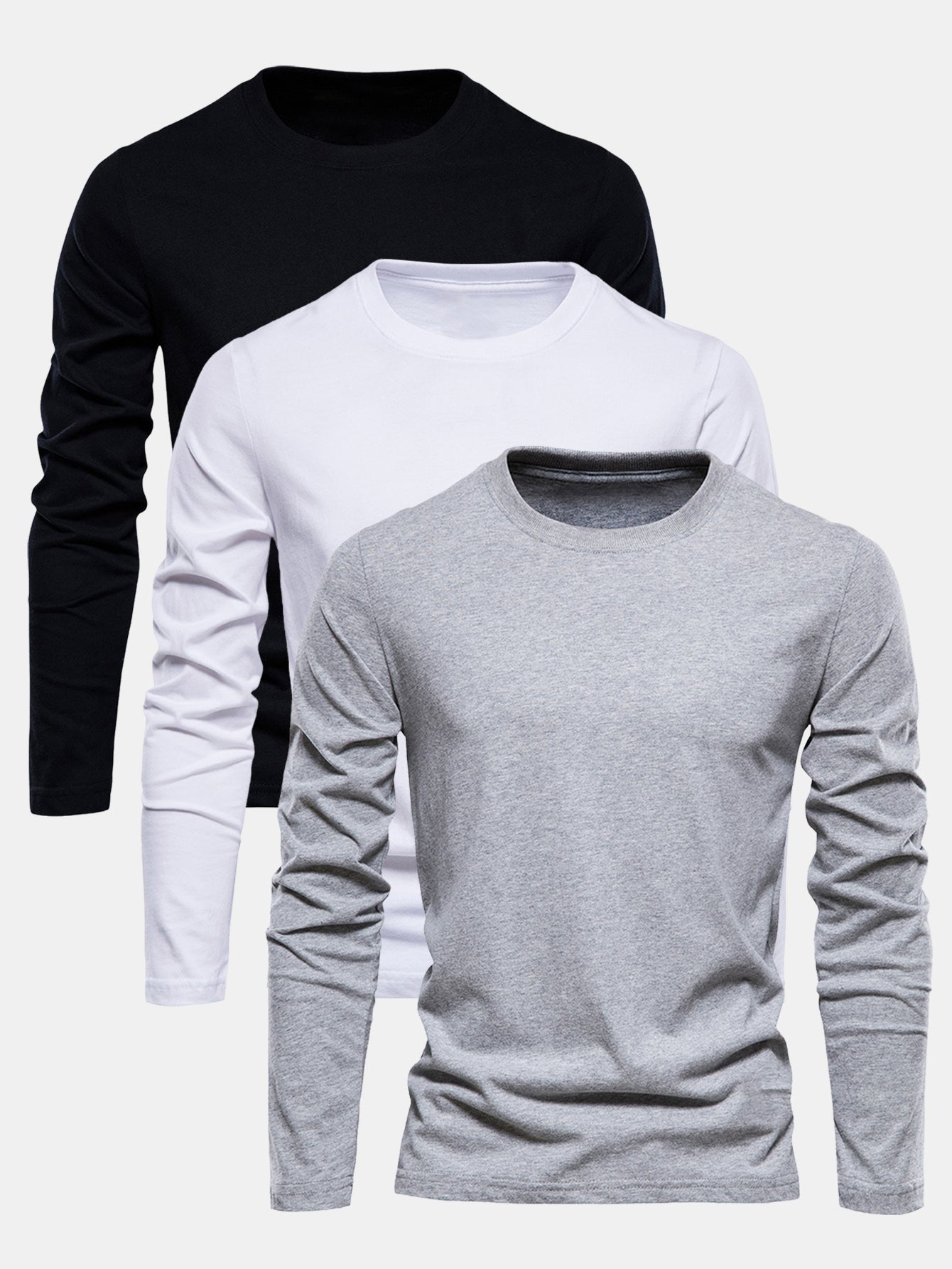 3 Pieces Basic Long Sleeve Cotton T-Shirts