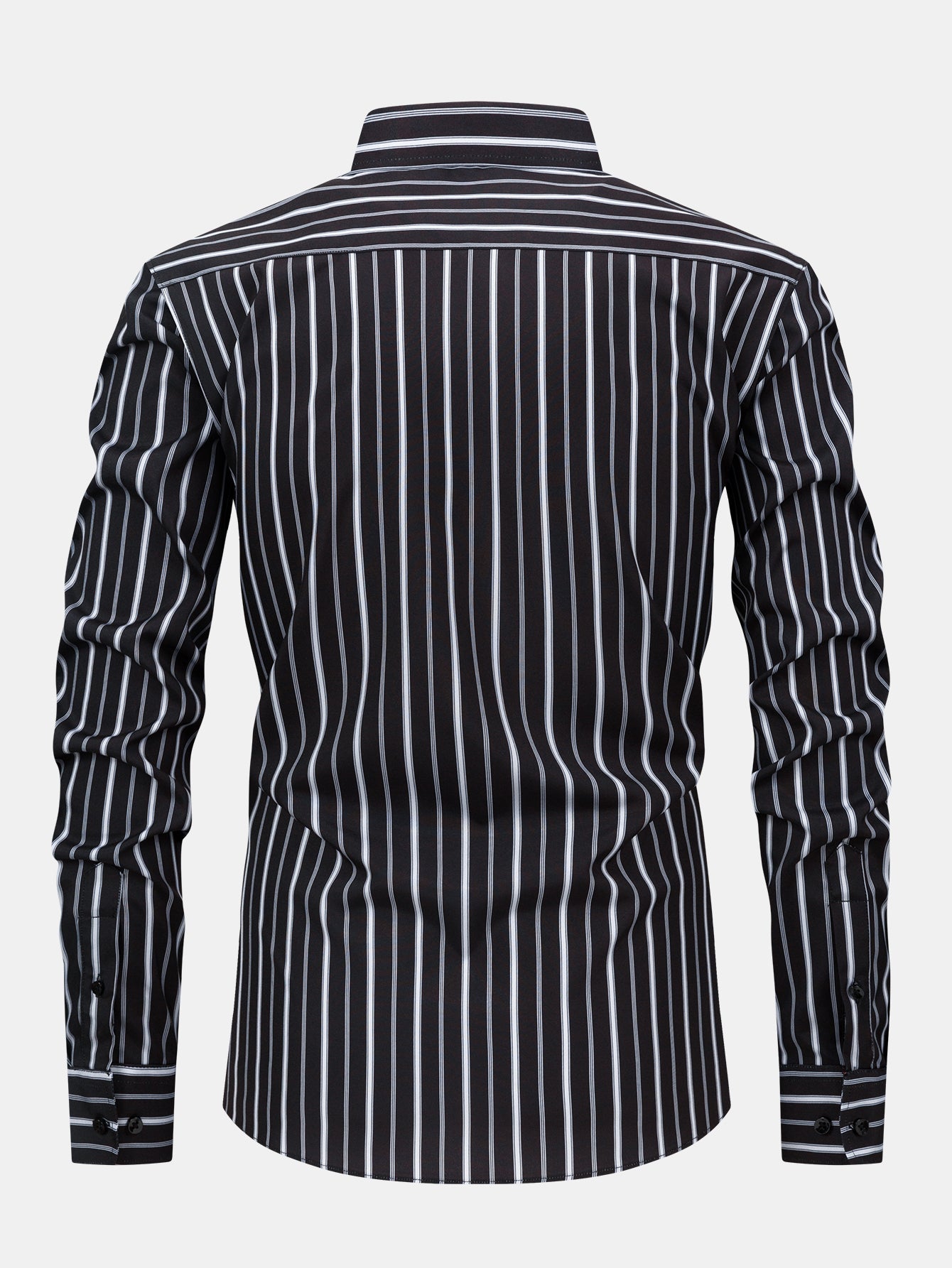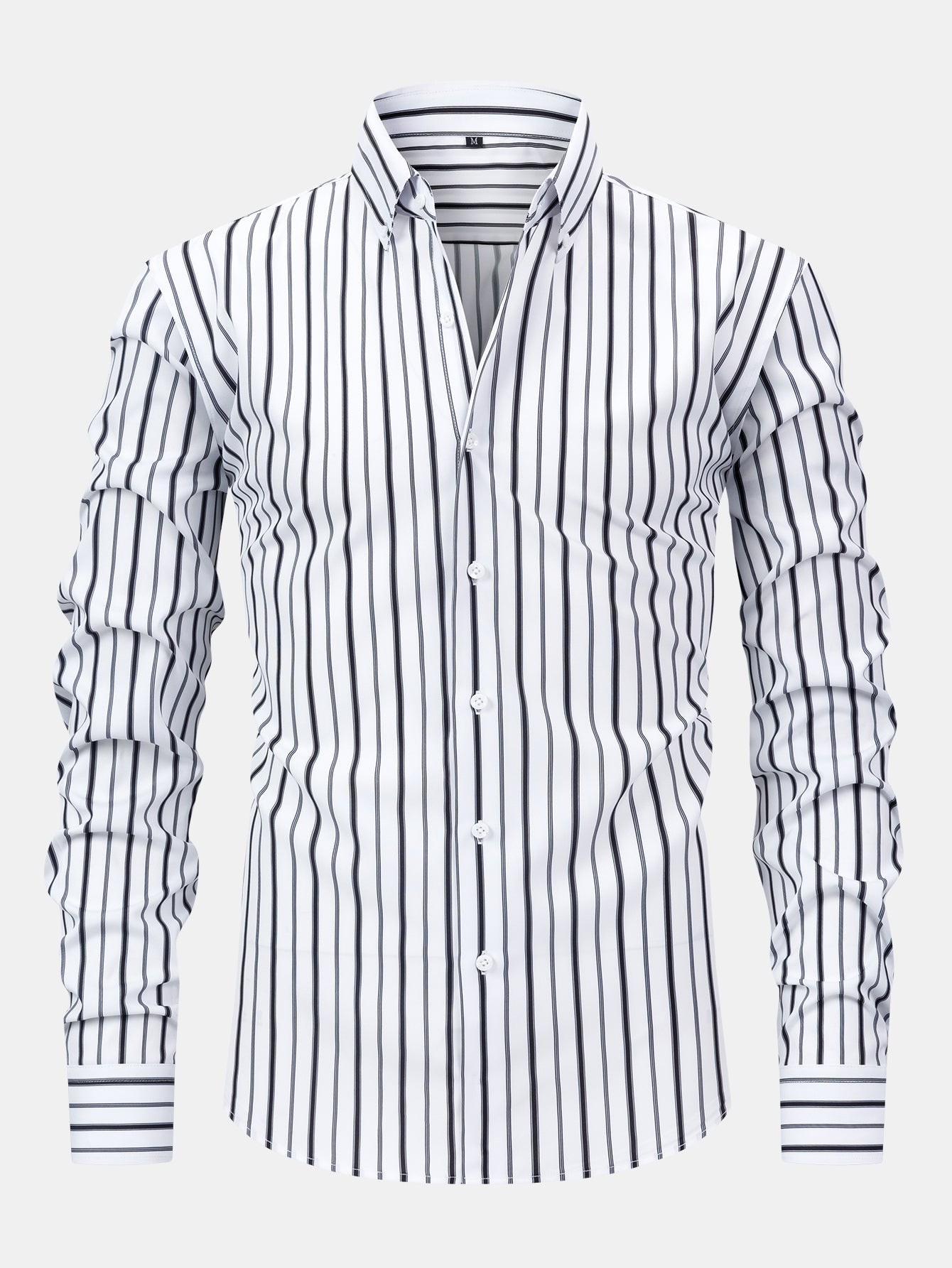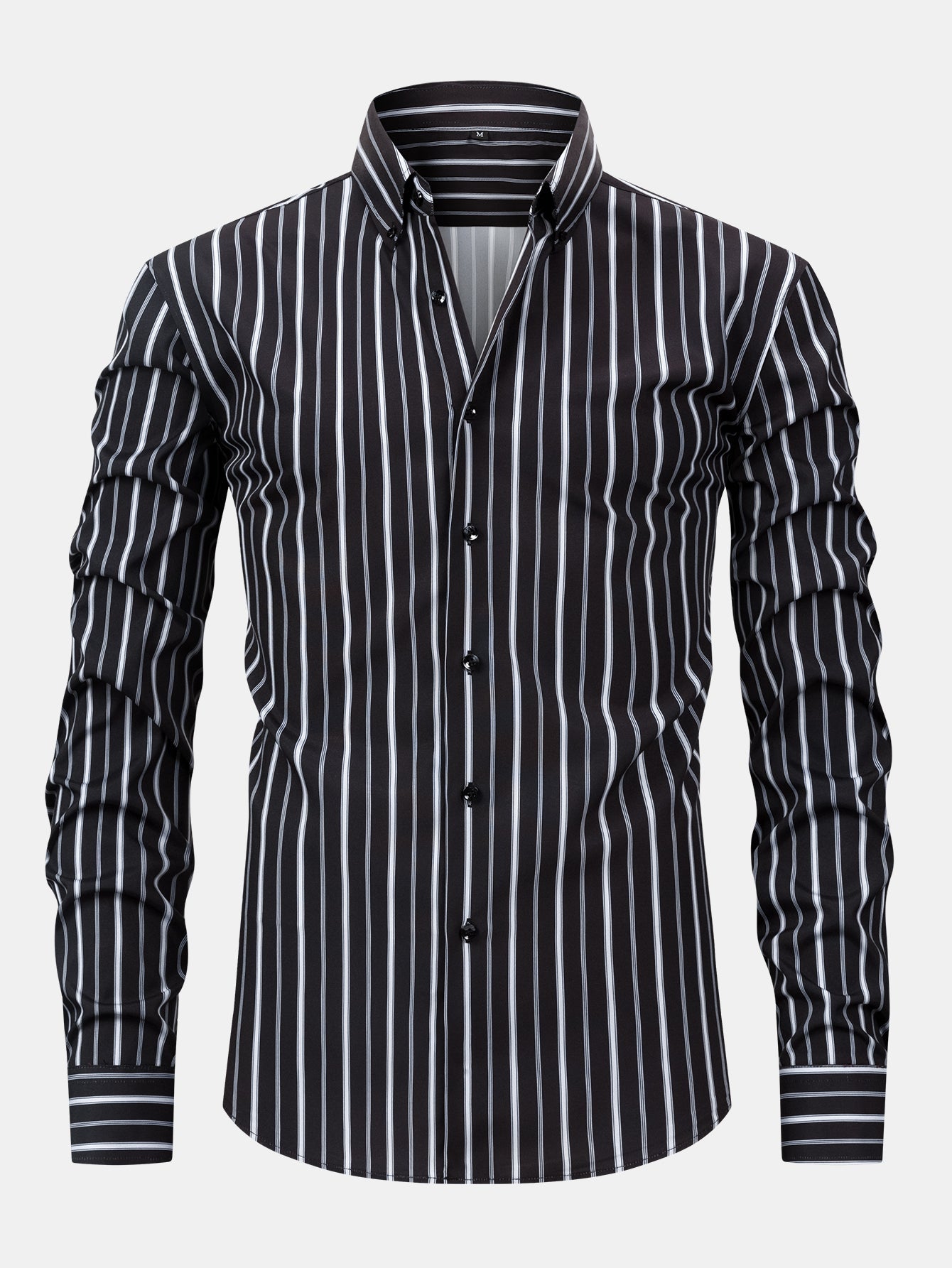 The long sleeve stripe button-up shirt features clean lines and a crisp collar, while the slim fit tapered trousers offer a sleek, structured silhouette—perfect for elevating your everyday style or stepping into a smart-casual setting with confidence.