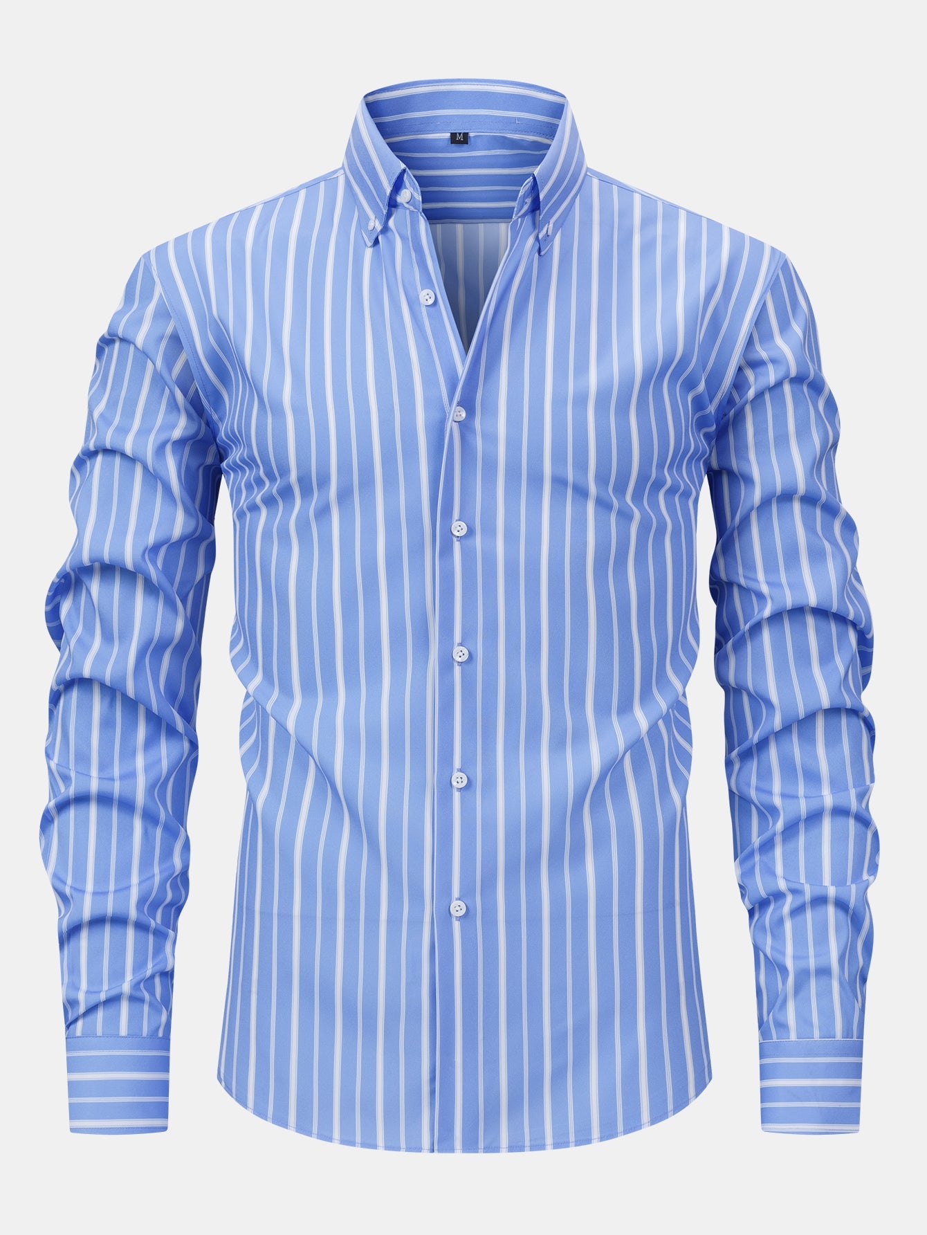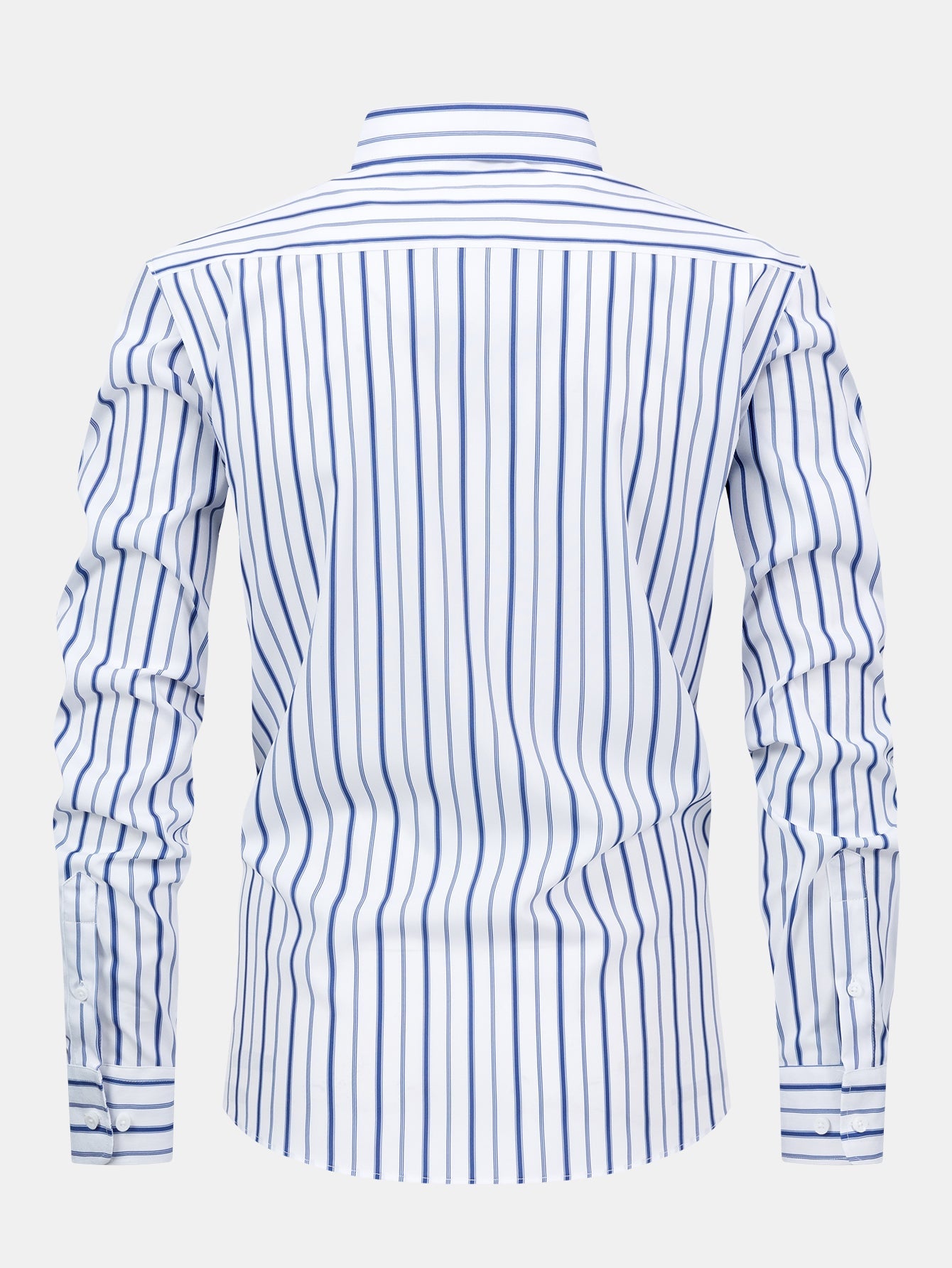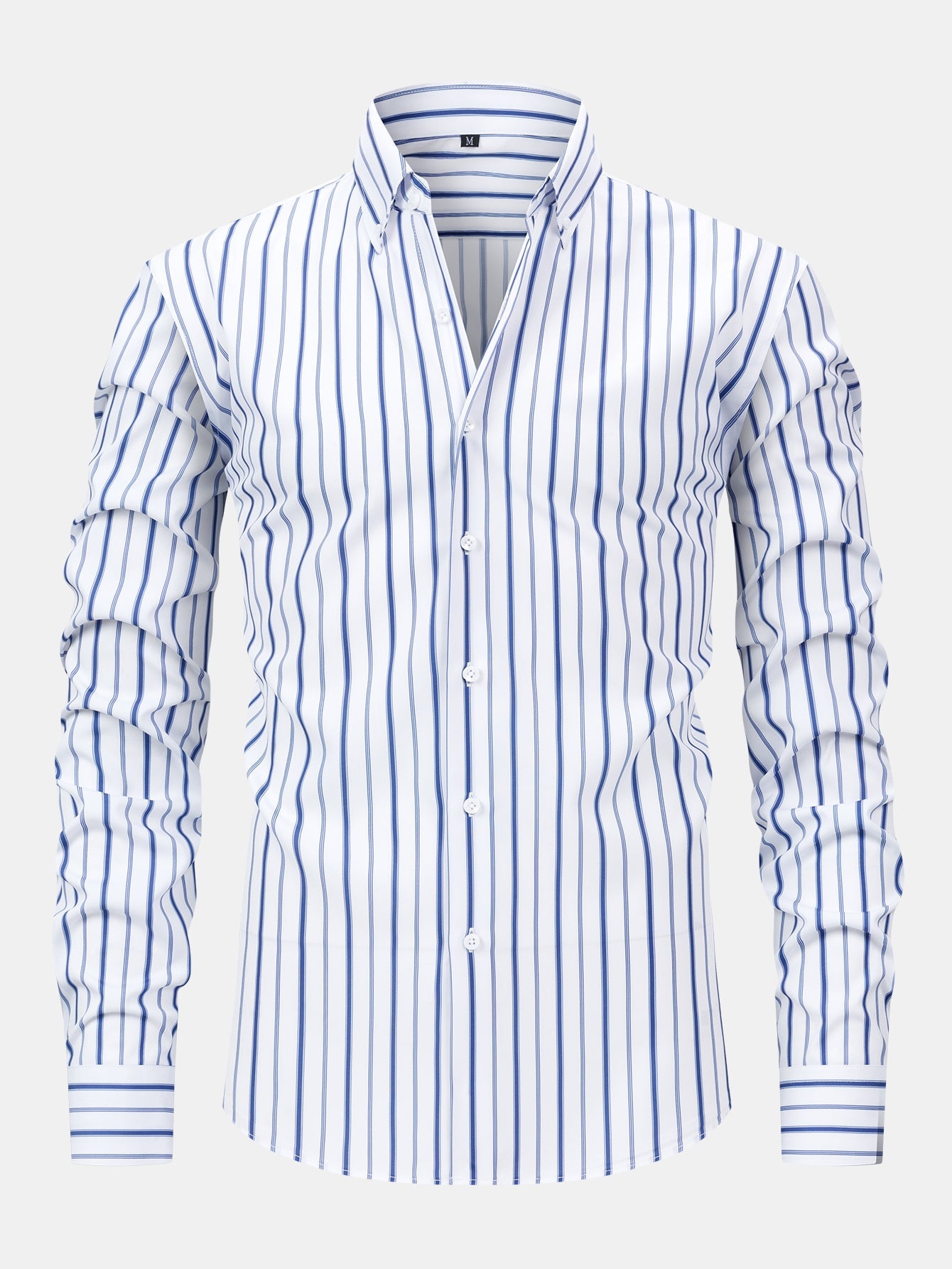 The long sleeve stripe button-up shirt features clean lines and a crisp collar, while the slim fit tapered trousers offer a sleek, structured silhouette—perfect for elevating your everyday style or stepping into a smart-casual setting with confidence.