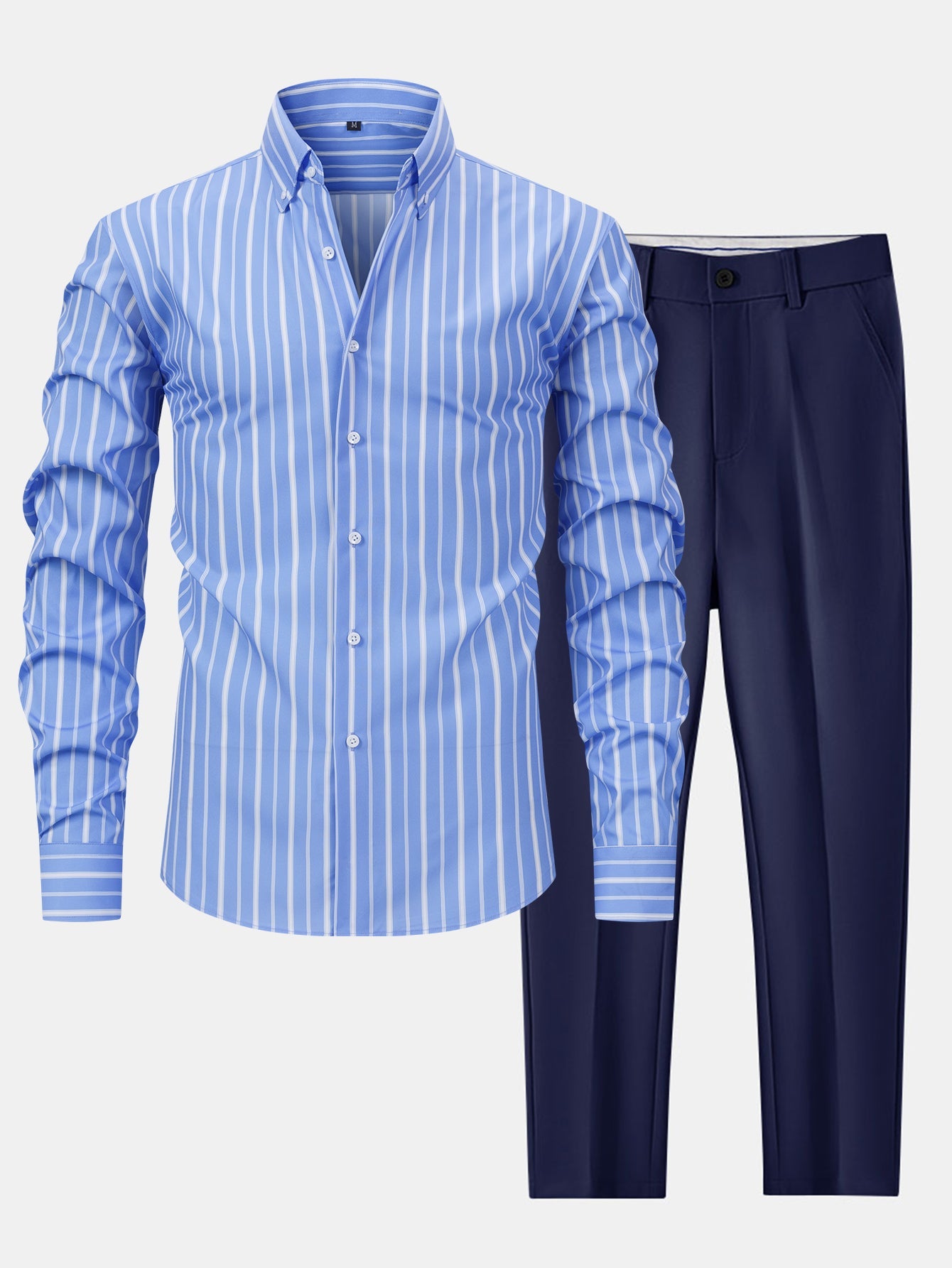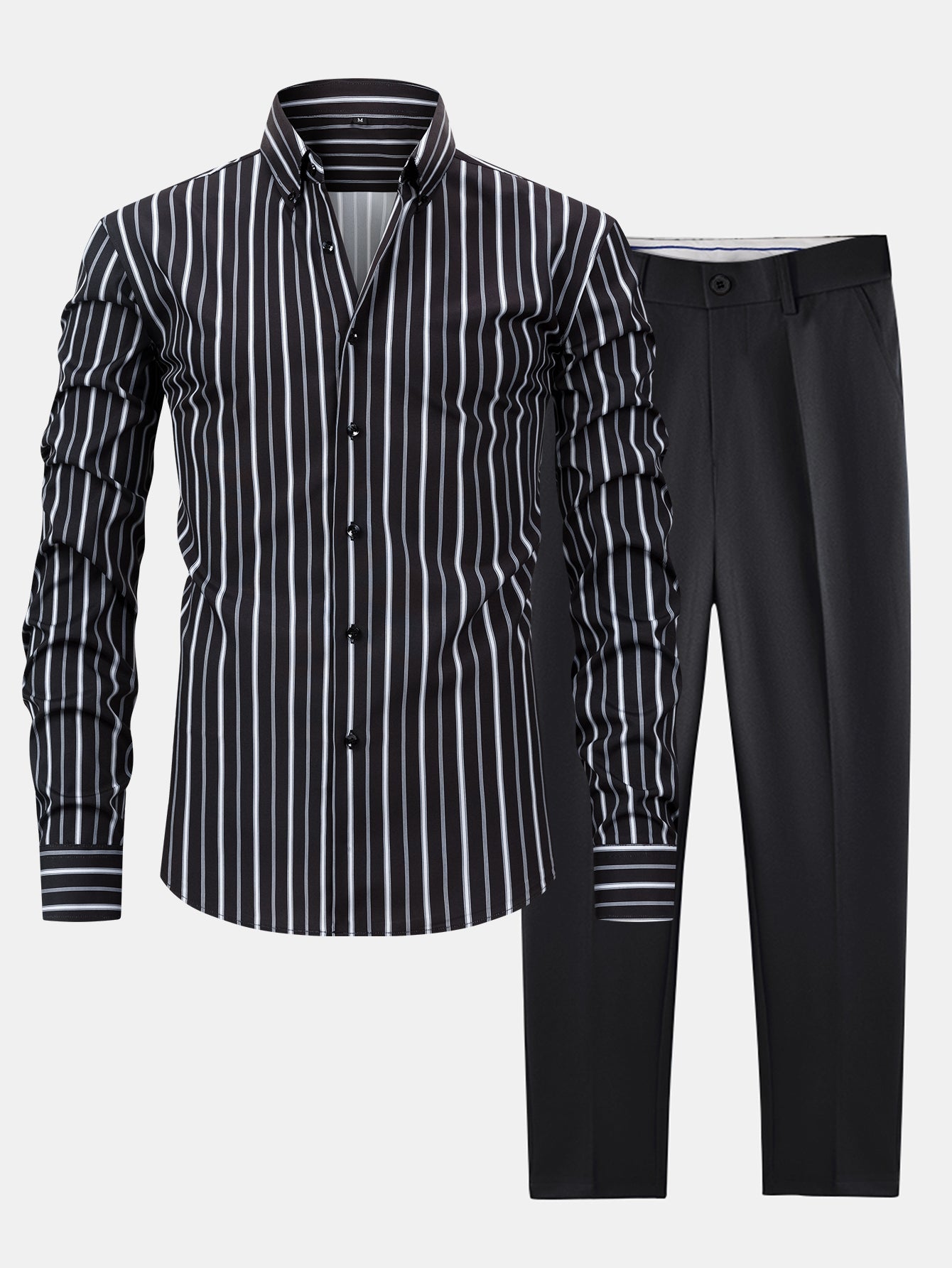 Long Sleeve Stripe Button Up Shirt & Slim Fit Tapered Trousers