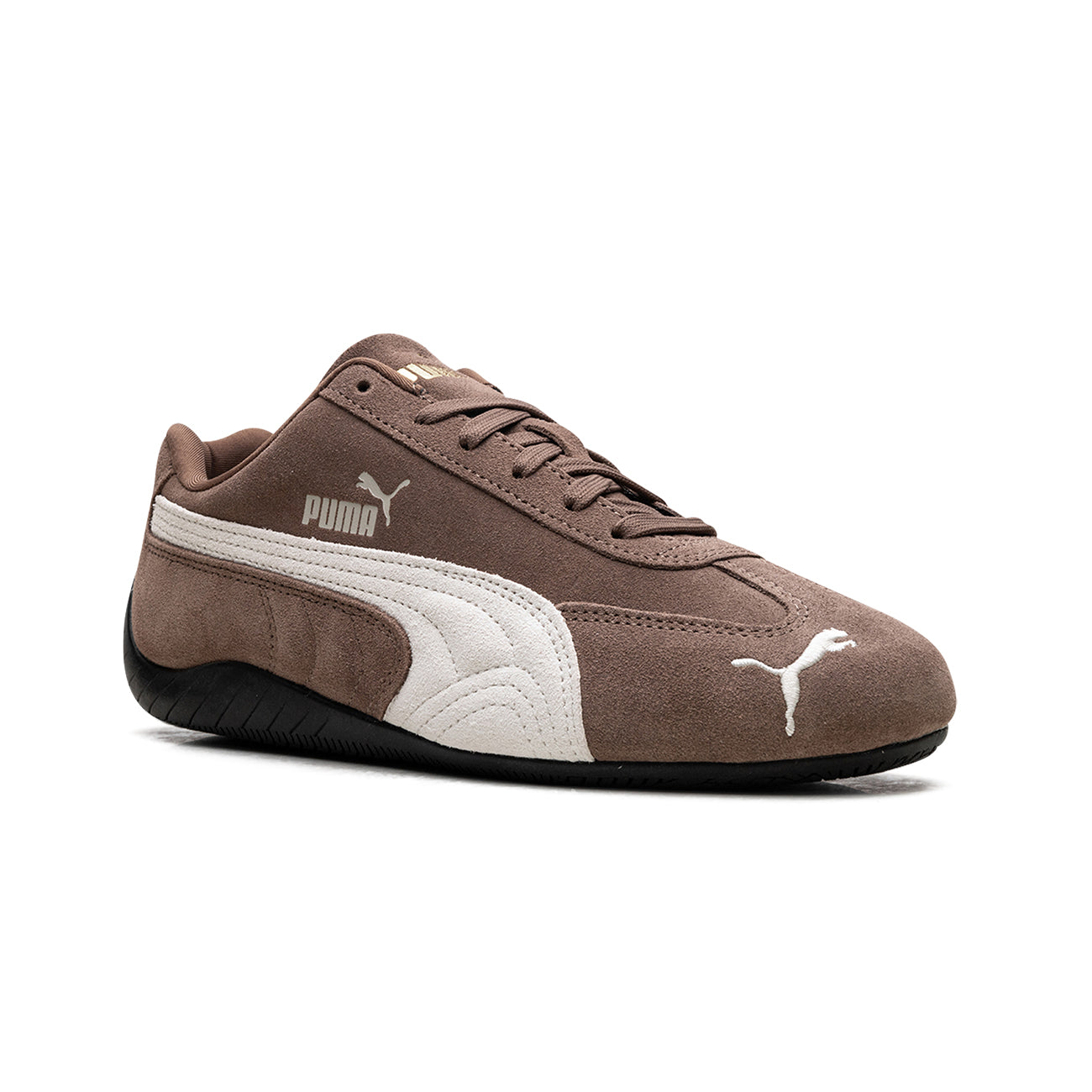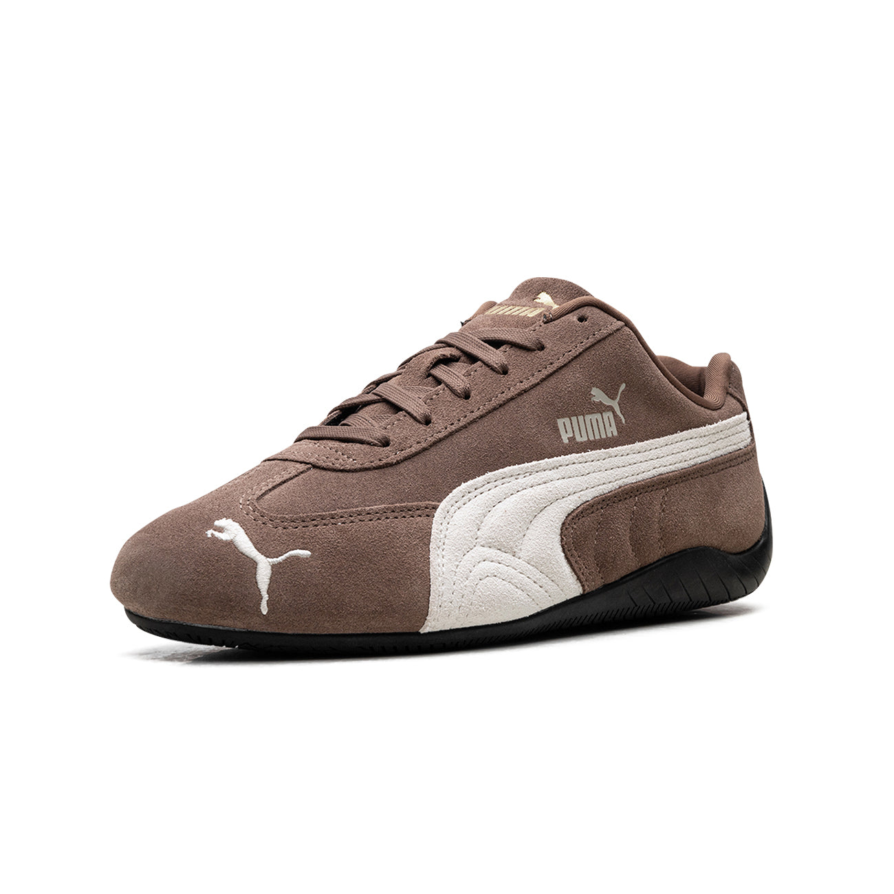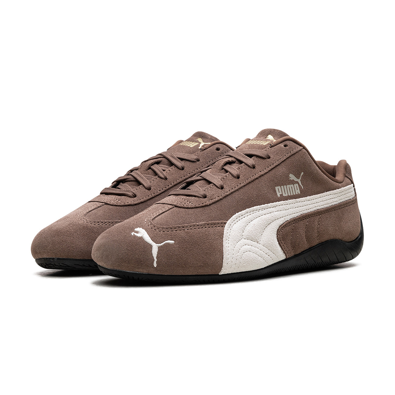 Sleek motorsport-inspired style in a refined low-profile design. Soft suede with coffee and ivory accents adds sophistication to any look.
